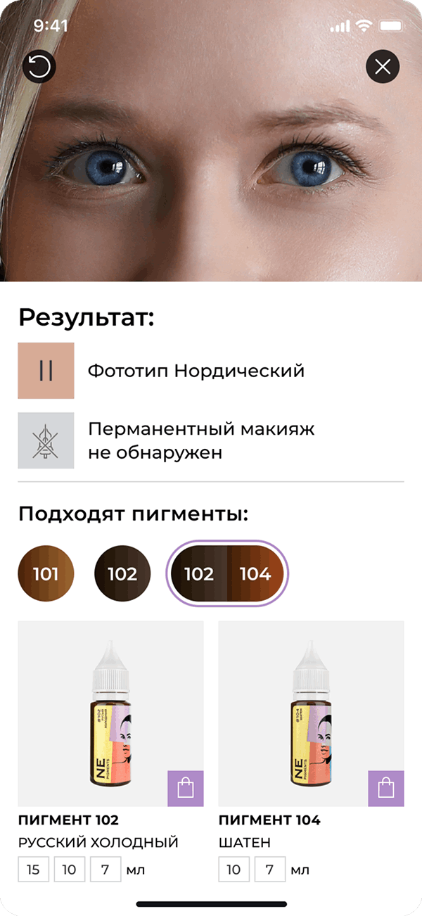 Добавили возможность перейти в магазин NE pigments, и приобрести подобранные пигменты