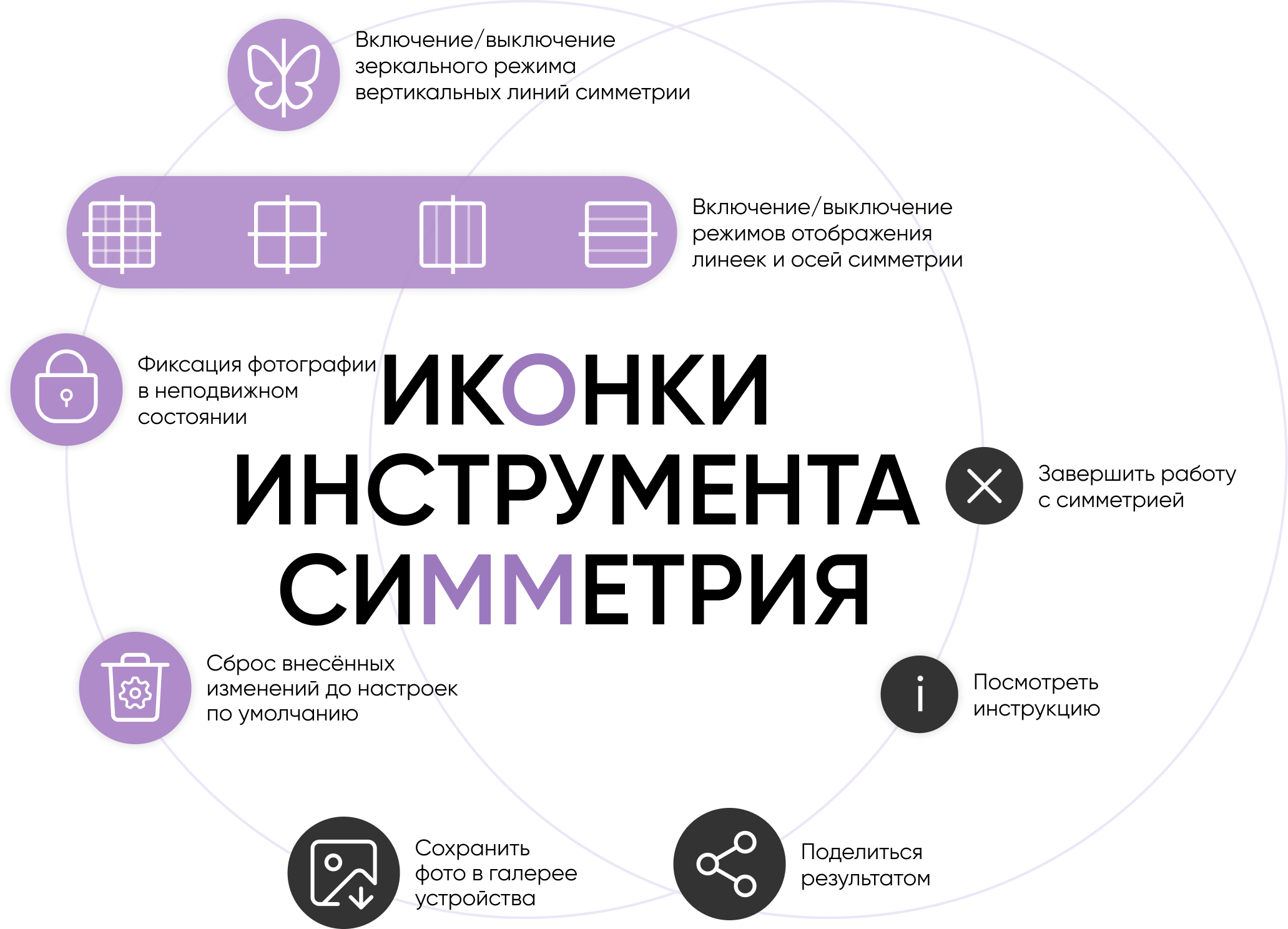 Создание интерфейса для инструмента «Симметрия» стало одной из самых непростых и интересных задач — мы добивались того, чтобы пользователи интуитивно и без подсказок понимали, как им пользоваться