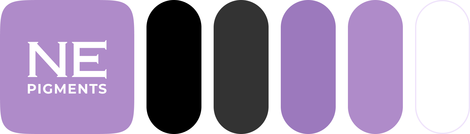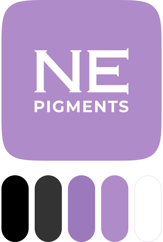 Дизайн создавали на основании фирменного стиля бренда и предпочтений клиента. Использовали фирменные цвета NE pigments — лавандовый и белый.